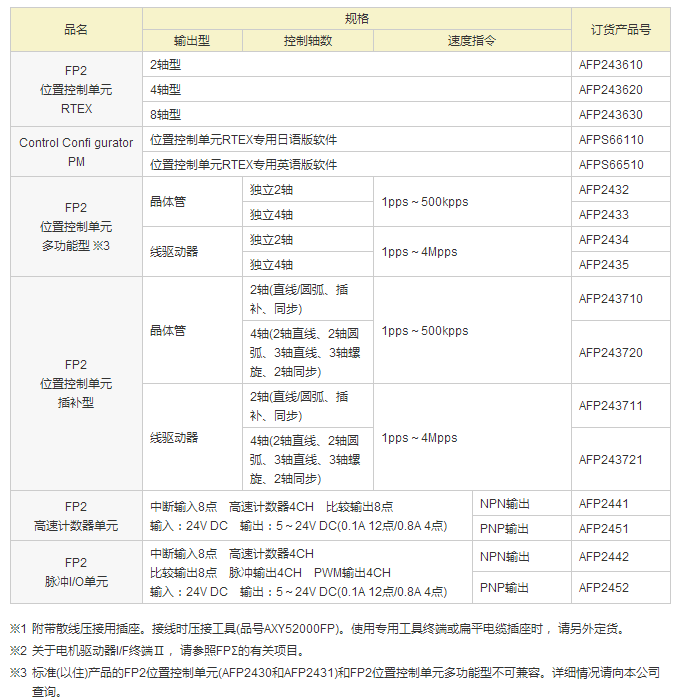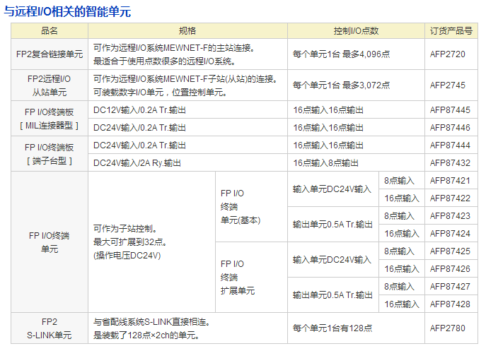 FP2、FPΣ中分別備有PROFIBUS DP、DeviceNet、CANopen各個主站單元。