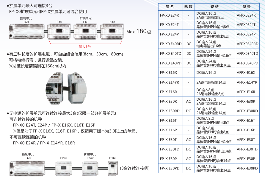 無電源的擴展單元可連續(xù)連接最大3臺(僅限一部分擴展單元)可連續(xù)連接的機種